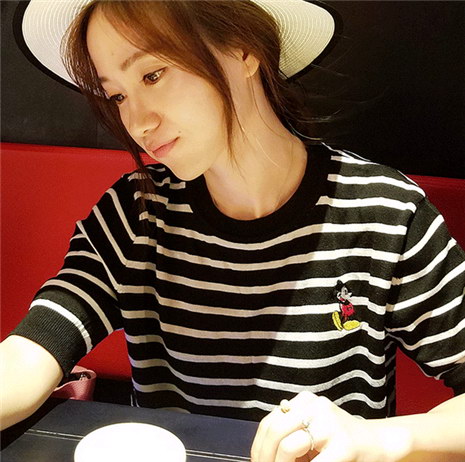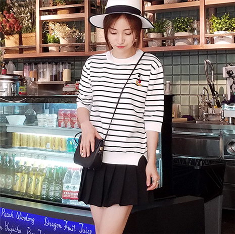 五分袖条纹刺绣针织T